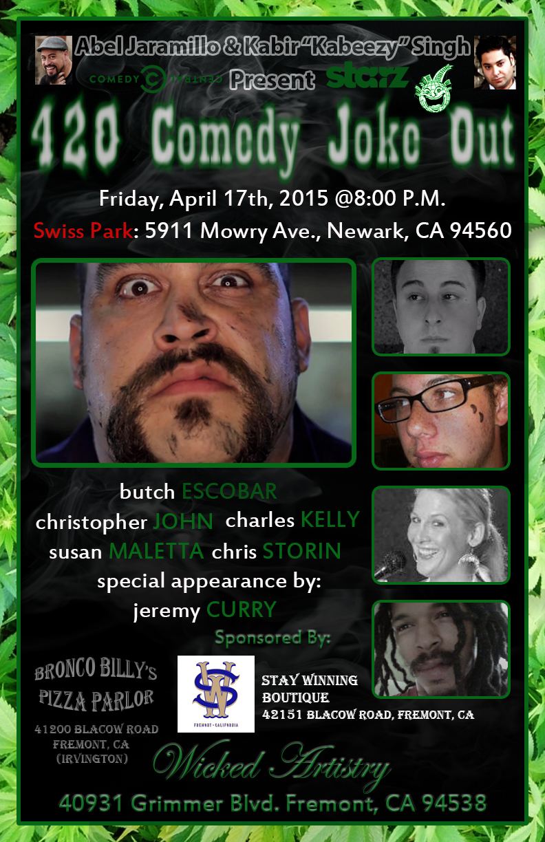 Catch Abel’s comedy show “420 Comedy Joke Out” live on Friday April 17th, 2015 starting at 8:00 P.M. @ Swiss Park in Newark, California. Tickets on sale now on http://www.eventbrite.com/e/420-comedy-joke-out-presented-by-abel-jaramillo-kabir-kabezzy-singh-tickets-15644424896?aff=eac2 and http://www.kabircomedy.com